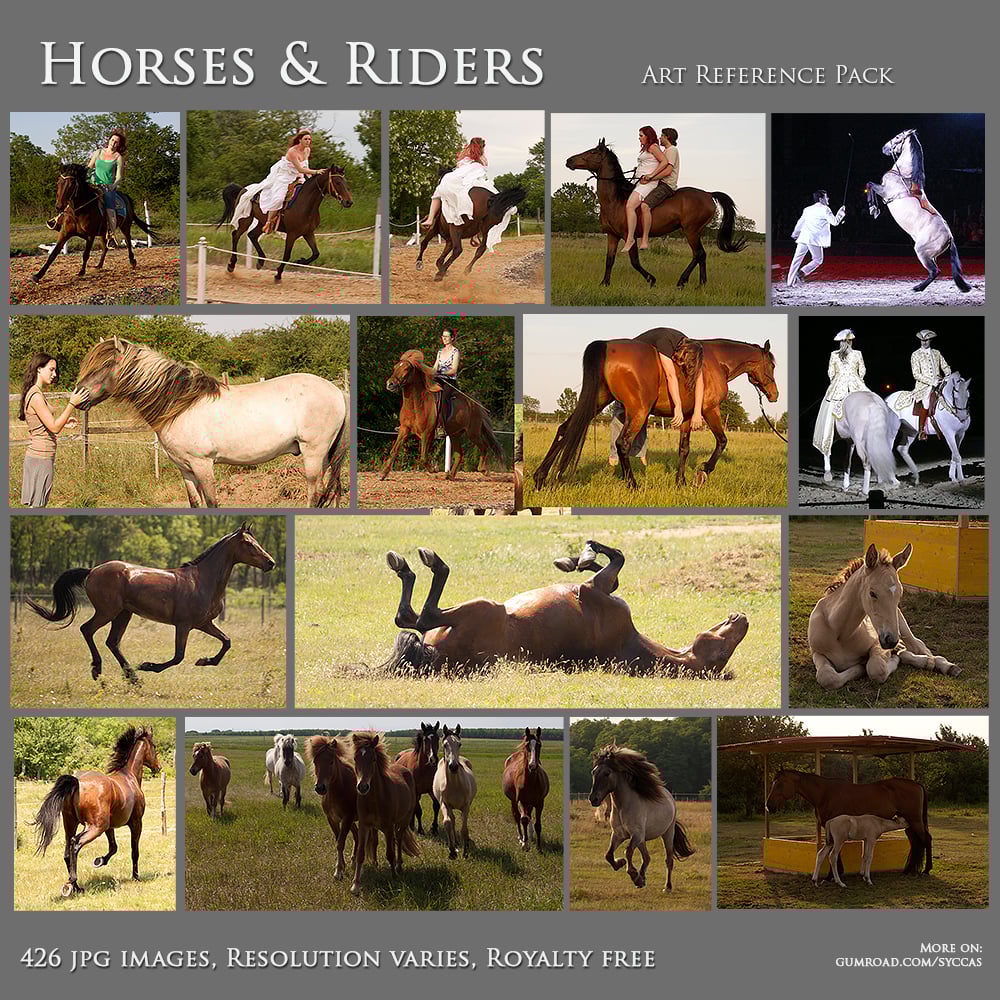 This rar/zip file contains over 400 jpg images of various horses (including icelandic horses) and riders.